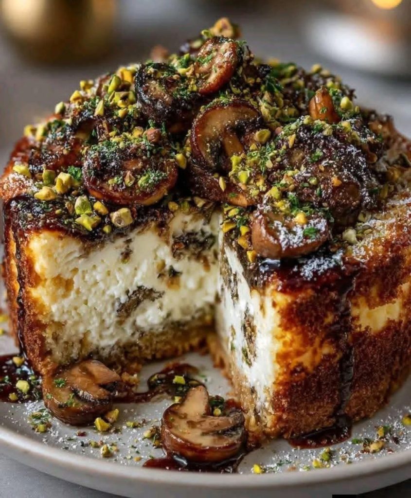 Beat cream cheese and ricotta until smooth. Fold in mushrooms, pistachios, herbs, salt, and pepper.