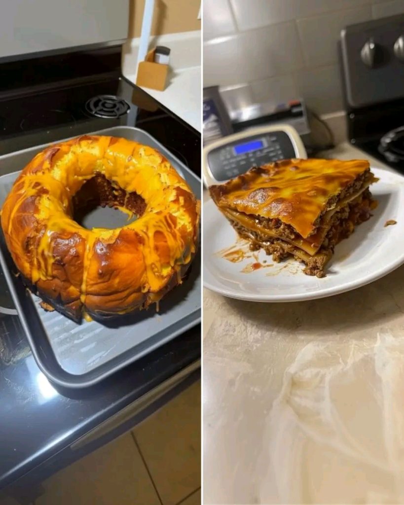 Place a plate over the bundt pan and carefully invert to release the taco ring.