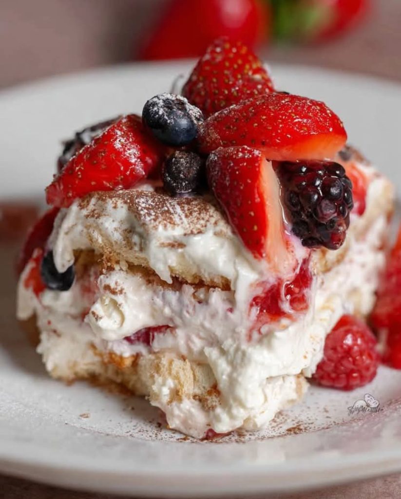 A fresh twist on a classic tiramisu — creamy, fruity, and light, perfect for spring and summer gatherings.