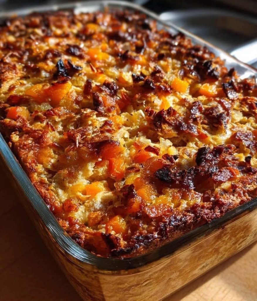 Transfer to Baking Dish: Pour the mixture into the prepared baking dish, spreading it out evenly.