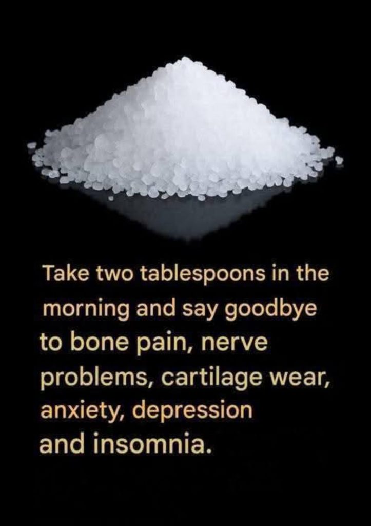 Taking large amounts of any mineral or salt—such as two tablespoons daily—can be harmful and is not medically recommended. Always follow safe dietary guidelines and consult a healthcare professional for ongoing pain, mental health concerns, or sleep issues.