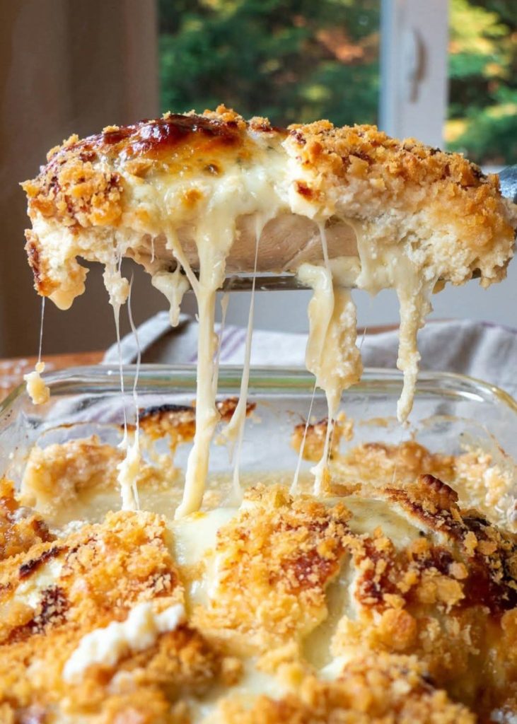 Place the chicken in a baking dish and bake in a preheated oven at 375°F (190°C) for 25–30 minutes, or until the chicken is cooked through and the top is golden and crispy.