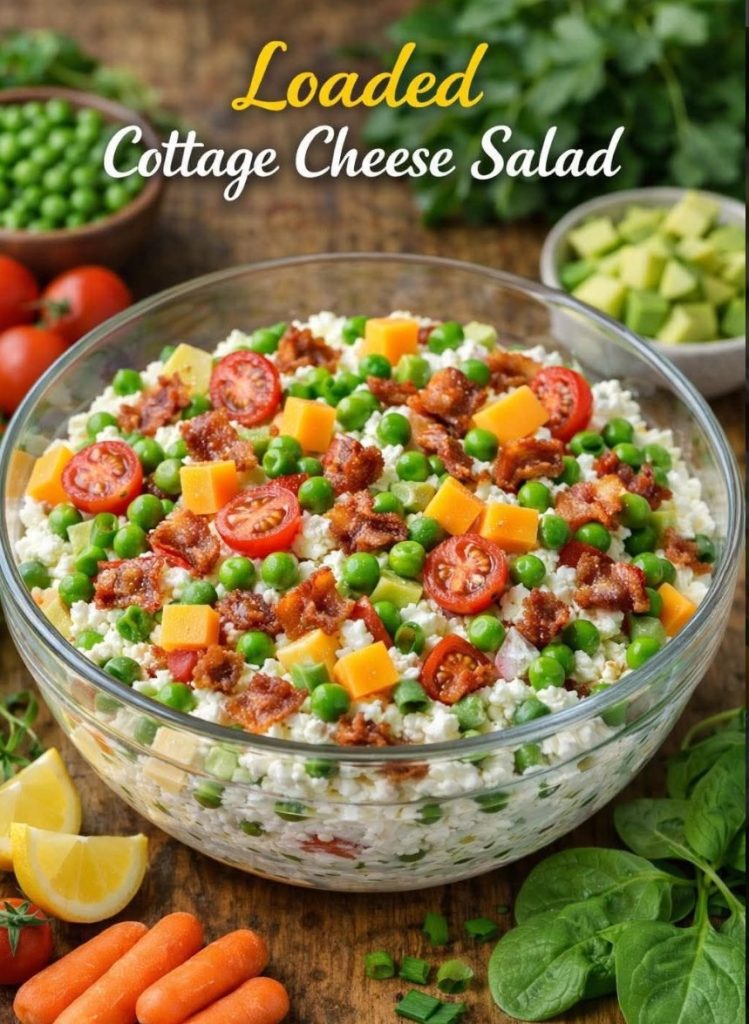 This Loaded Cottage Cheese Salad is creamy, crunchy, and packed with protein—making it perfect for breakfast, lunch, or a light dinner. With crispy bacon, sharp cheddar cheese, sweet peas, and juicy cherry tomatoes, every bite is fresh, satisfying, and full of flavor. It’s a simple, feel-good bowl that comes together in minutes and keeps you full and energized.