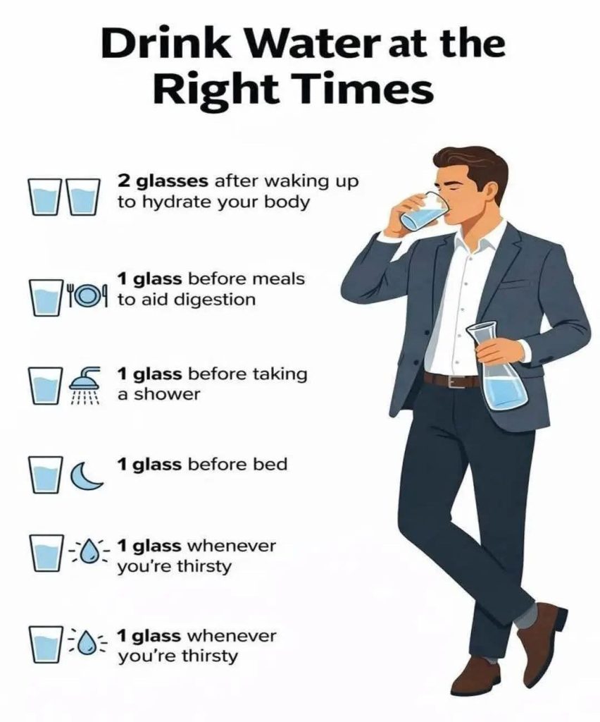 Drinking water at the right moments supports daily functions, promotes better digestion, and contributes to long-term well-being in a simple and natural way.