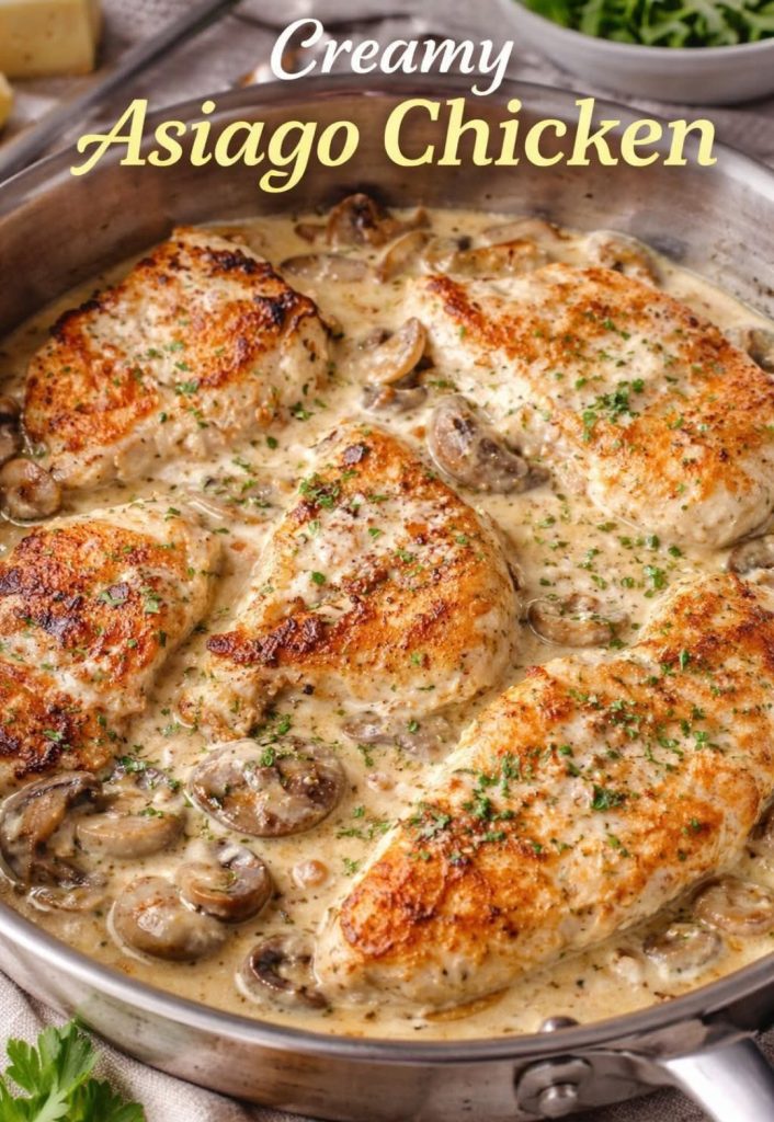 Creamy Asiago Chicken is insanely delicious and packed with sensational flavor. Tender, pan-seared chicken breasts are smothered in a luxuriously creamy Asiago cheese sauce infused with garlic and herbs. It’s rich, comforting, and elegant enough for guests—yet easy enough for a weeknight dinner. Every bite is cheesy, savory, and deeply satisfying.