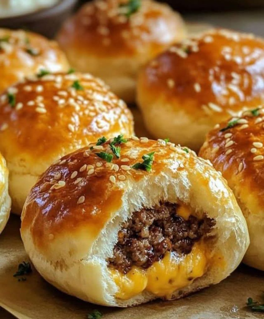 In a small bowl, mix melted butter and grated Parmesan cheese. Brush the tops of the cheeseburger bombs with the garlic Parmesan mixture.